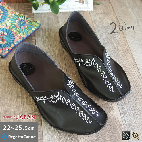 リゲッタ カヌー レディース シューズ CJBB4701 バブーシュ 刺繍 2way 軽量 | フラット バブーシュソール コンフォート ルーペインソール TPR 疲れない おしゃれ エスニック 黒 日本製 R-ark ラーク あす楽